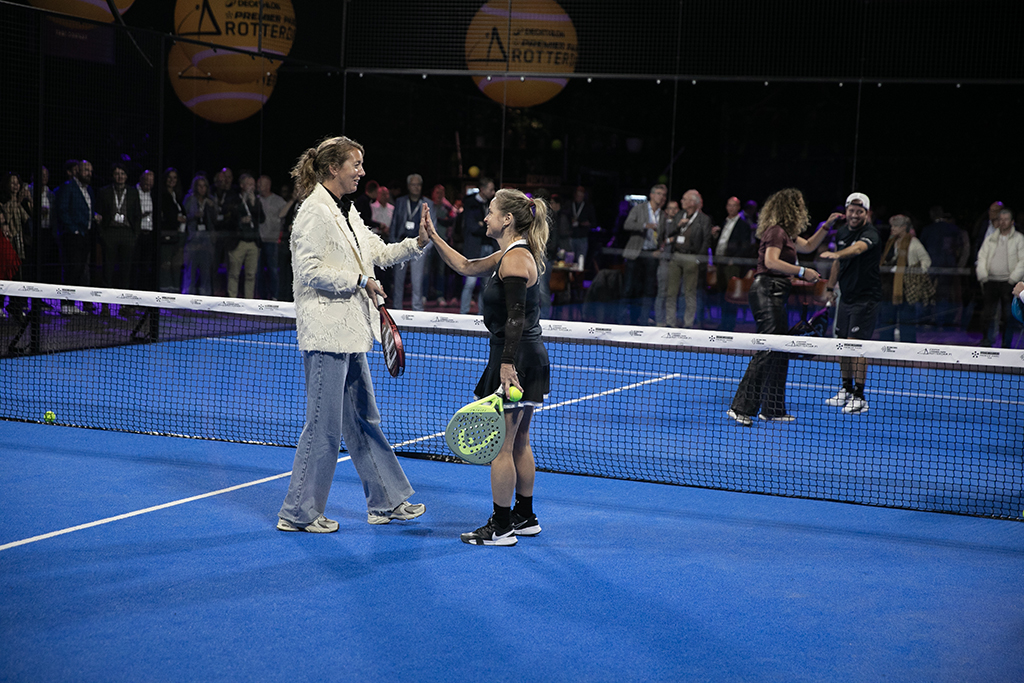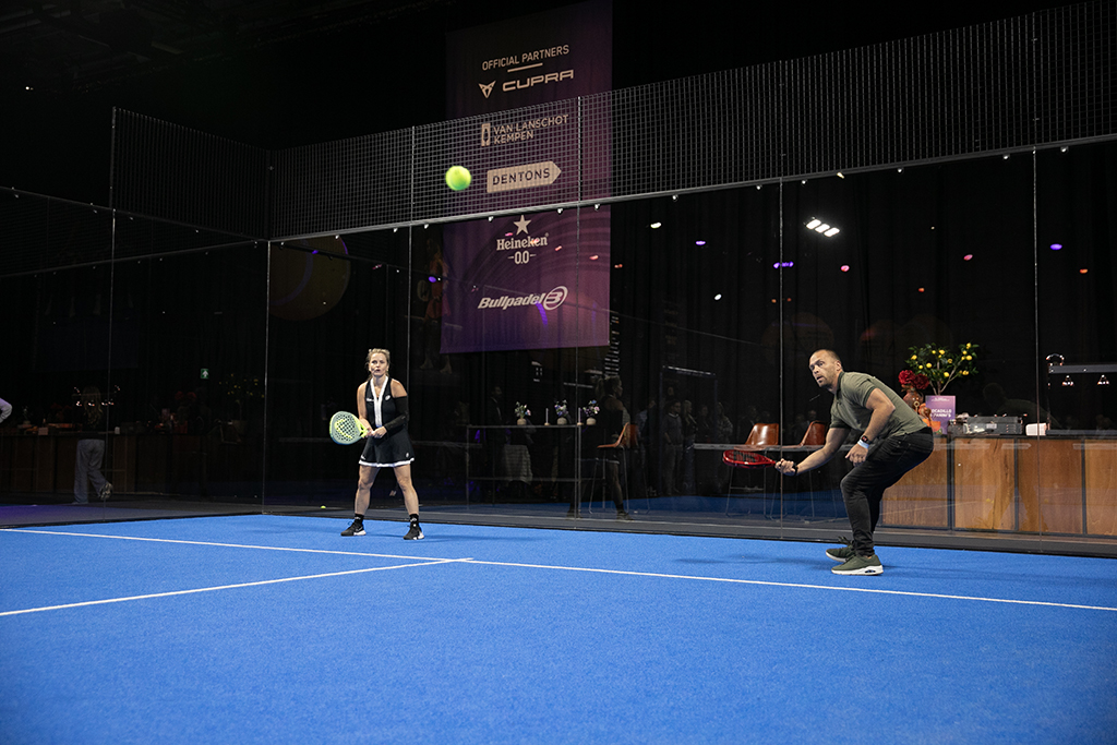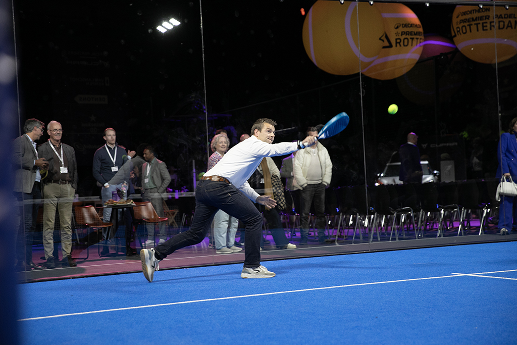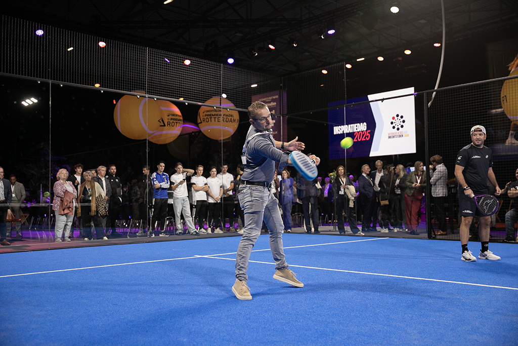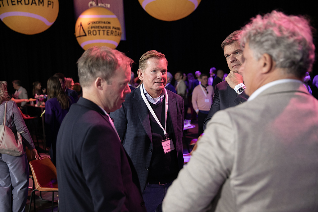 Na deze openingswoorden van voorzitter Jacob Klink, benadrukte burgemeester Mol van de gemeente Dordrecht de kracht van het ondernemersnetwerk, dat diverse sectoren verbindt en stimuleert tot innovatie. Er is een gezamenlijke ambitie voor regionale ontwikkeling en samenwerking. De regio is trots op haar maritieme maakindustrie en andere sectoren zoals duurzame technologie en zorg, waar ondernemers samen met onderwijs en overheid impact maken. Innovatietafels en projecten zoals het Doorstroomplan, de campus rond het Leerpark en energiecoöperaties tonen succesvolle samenwerking tussen ondernemers en overheid. Ondanks zorgen over economische groei en bereikbaarheid, is er een gezamenlijke ambitie om te investeren in mensen, innovatie en duurzaamheid voor een sterke en leefbare regio. Vervolgens deed wethouder Chris van Benschop een oproep om te investeren in menselijk kapitaal via het Talentenfonds Drechtsteden. Daarna was het woord aan John van Lottum, toernooidirecteur, en Erik de Vaal, manager sales Cupra. Zij legden een inspirerende link tussen padel en ondernemerschap. Padel is een toegankelijke sport die mensen op een natuurlijke manier met elkaar verbindt, ongeacht achtergrond of ervaring. Als kers op de taart mochten mensen uit het publiek zelf padellen tegen Rafael van der Vaart en Fatima Moreira de Melo, een unieke ervaring!