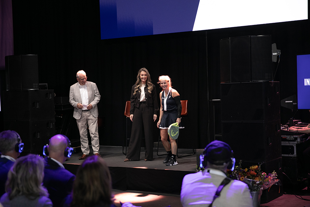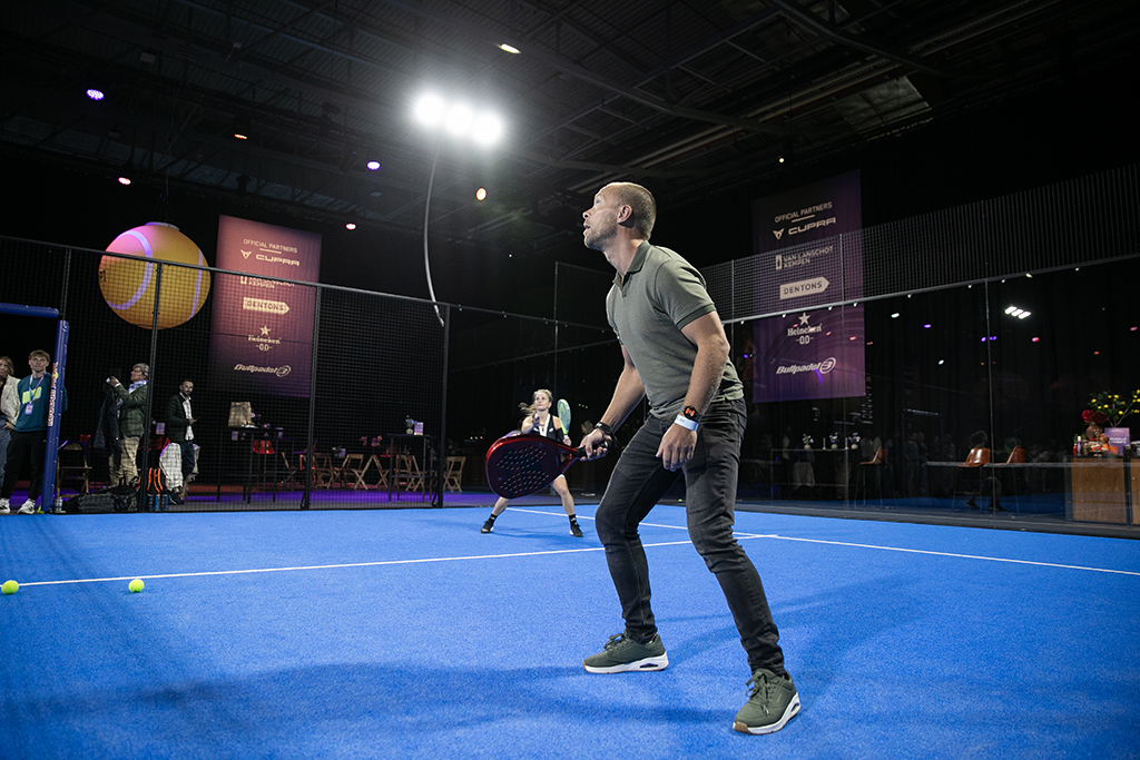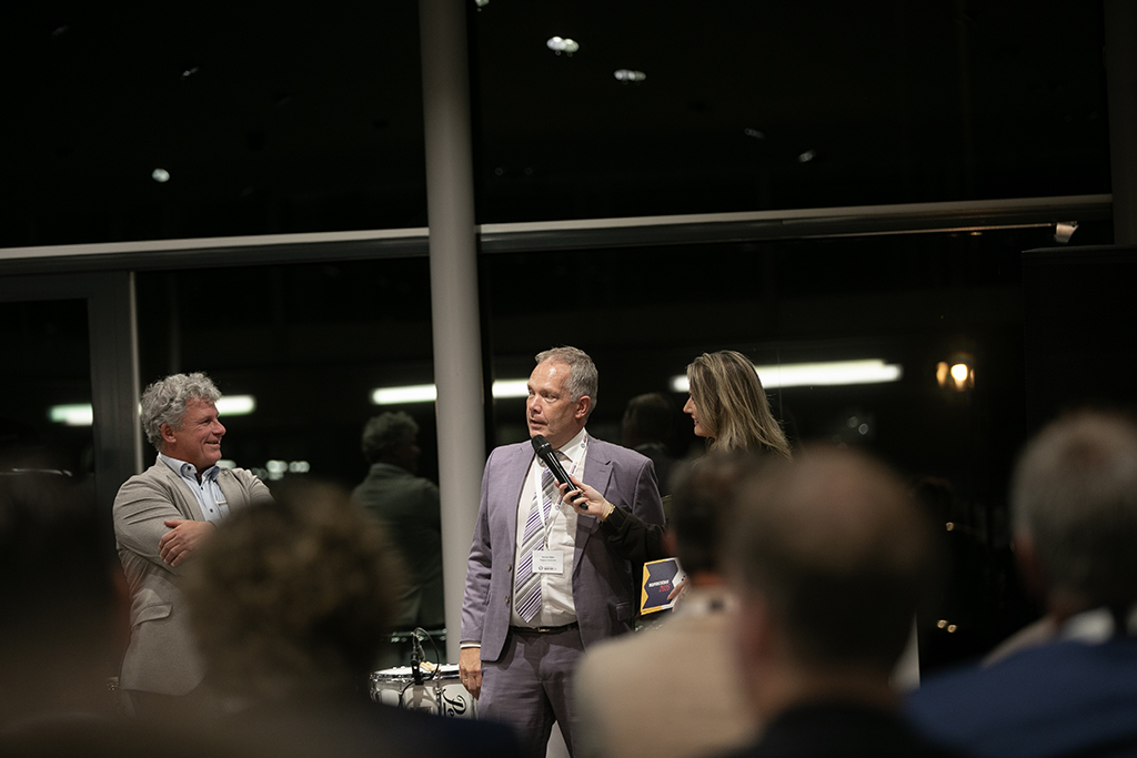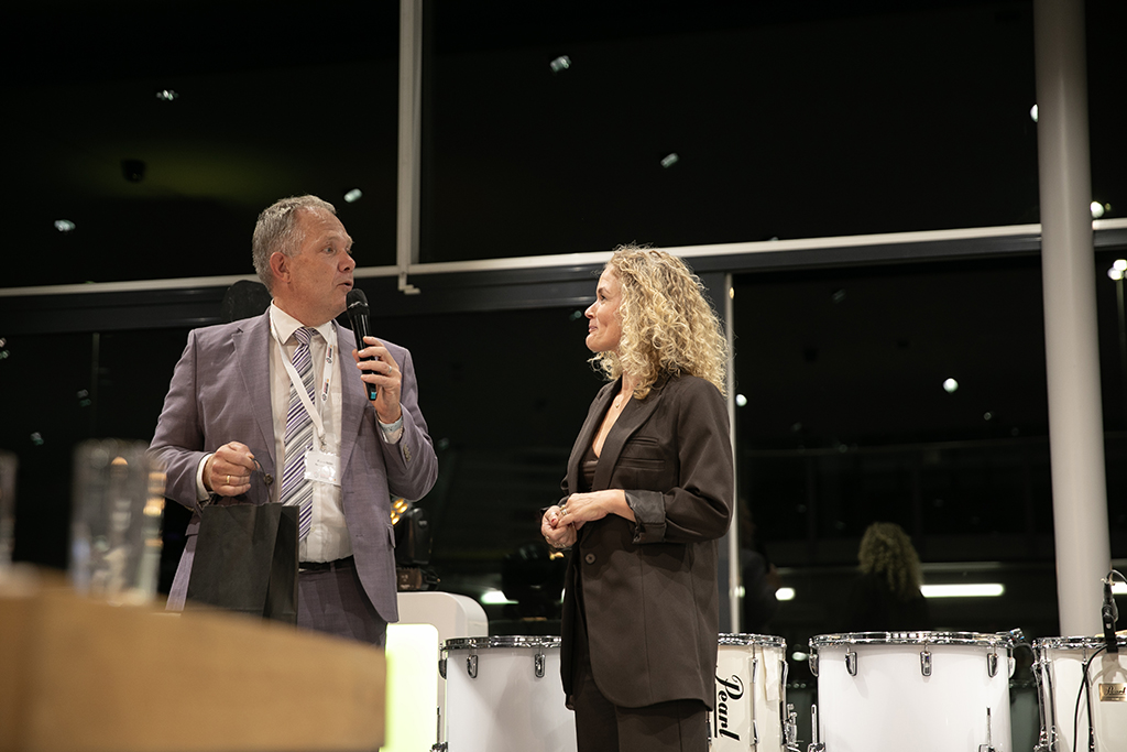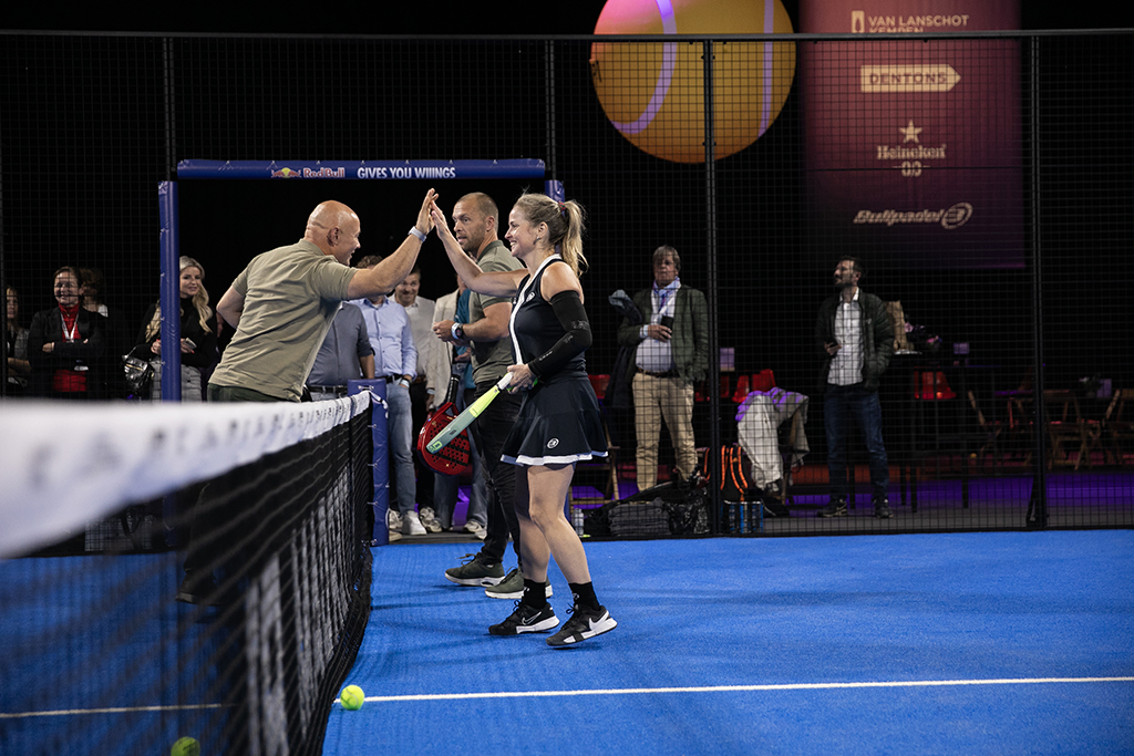 Na deze openingswoorden van voorzitter Jacob Klink, benadrukte burgemeester Mol van de gemeente Dordrecht de kracht van het ondernemersnetwerk, dat diverse sectoren verbindt en stimuleert tot innovatie. Er is een gezamenlijke ambitie voor regionale ontwikkeling en samenwerking. De regio is trots op haar maritieme maakindustrie en andere sectoren zoals duurzame technologie en zorg, waar ondernemers samen met onderwijs en overheid impact maken. Innovatietafels en projecten zoals het Doorstroomplan, de campus rond het Leerpark en energiecoöperaties tonen succesvolle samenwerking tussen ondernemers en overheid. Ondanks zorgen over economische groei en bereikbaarheid, is er een gezamenlijke ambitie om te investeren in mensen, innovatie en duurzaamheid voor een sterke en leefbare regio. Vervolgens deed wethouder Chris van Benschop een oproep om te investeren in menselijk kapitaal via het Talentenfonds Drechtsteden. Daarna was het woord aan John van Lottum, toernooidirecteur, en Erik de Vaal, manager sales Cupra. Zij legden een inspirerende link tussen padel en ondernemerschap. Padel is een toegankelijke sport die mensen op een natuurlijke manier met elkaar verbindt, ongeacht achtergrond of ervaring. Als kers op de taart mochten mensen uit het publiek zelf padellen tegen Rafael van der Vaart en Fatima Moreira de Melo, een unieke ervaring!