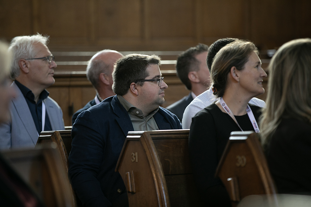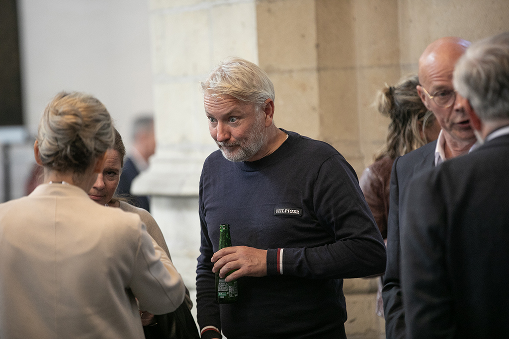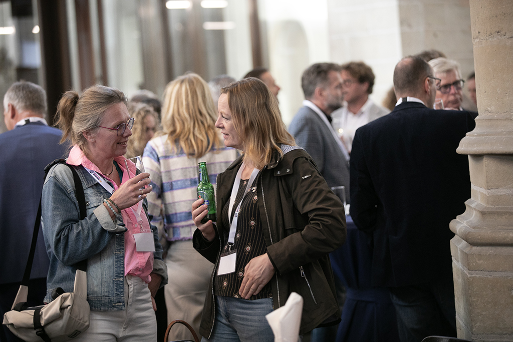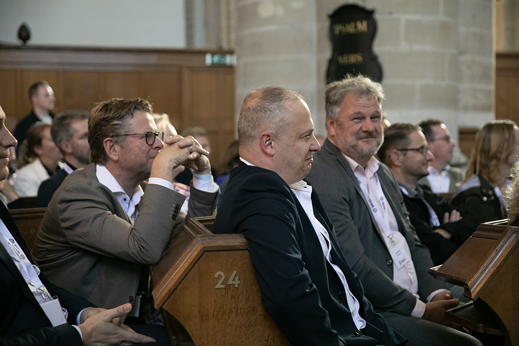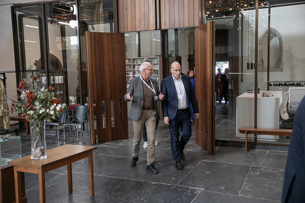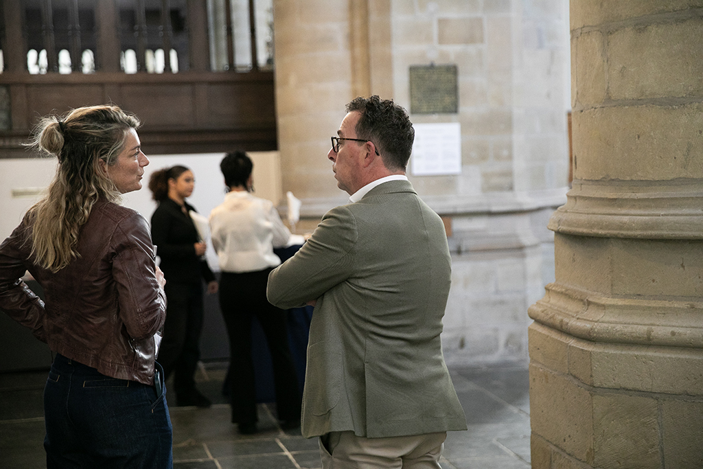 Na het sportieve gedeelte verplaatsten we ons naar De Grote Kerk in Dordrecht, waar een indrukwekkend filmpje werd vertoond over de historie van de kerk en haar rol in de hedendaagse maatschappij. De eeuwenoude muren vormden het decor voor een moderne dialoog over technologie en zingeving. Rens van der Vorst, technofilosoof, gaf een humoristische en prikkelende les in bewustzijnsontwikkeling. Hij maakte ons op originele wijze bewust van hoe we techniek moeten benutten om meer mens te zijn – en te blijven. Zijn verhaal zette aan tot nadenken over de rol van technologie in ons leven en hoe we deze kunnen inzetten met oog voor menselijkheid en ethiek.